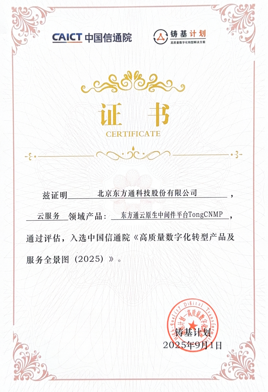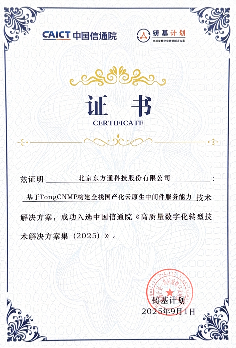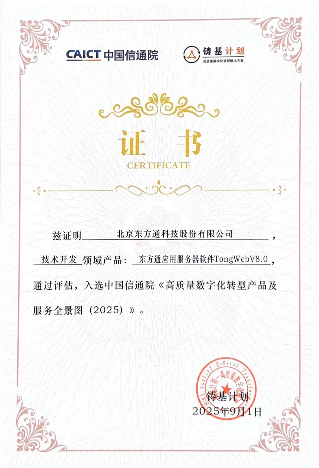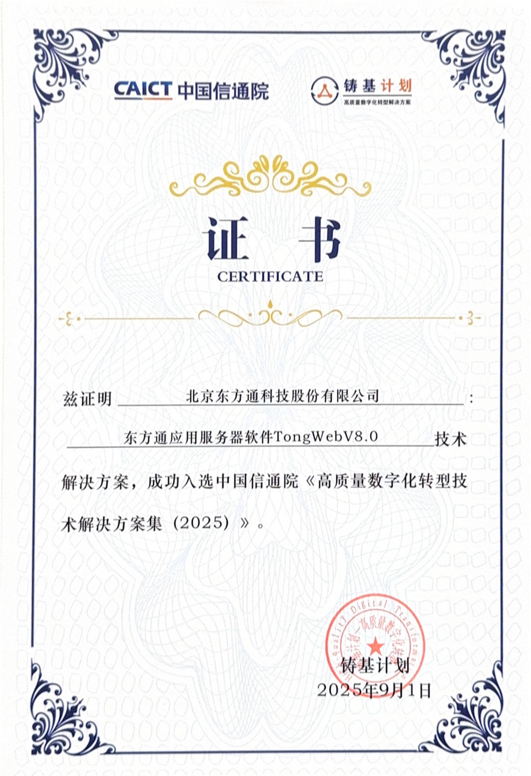 “铸基计划”是数字化转型浪潮下应运而生的重要行动,由中国信通院发起,旨在聚焦企业数字化转型中的痛点难点问题,通过链接数字化转型的供给侧与需求侧,助力各行各业实现高质量转型。“铸基计划”通过构建测评体系、制定评估标准、搭建供需对接平台等举措,赋能各行业的数字化升级。特别是在金融、体育、电信、“双碳”等重点领域,“铸基计划”不仅提供理论支撑,更输出可落地的解决方案。此次多款产品与解决方案入选,既是业界东方通对技术实力的认可,也是对东方通助力各行业数字化实践成果的肯定。