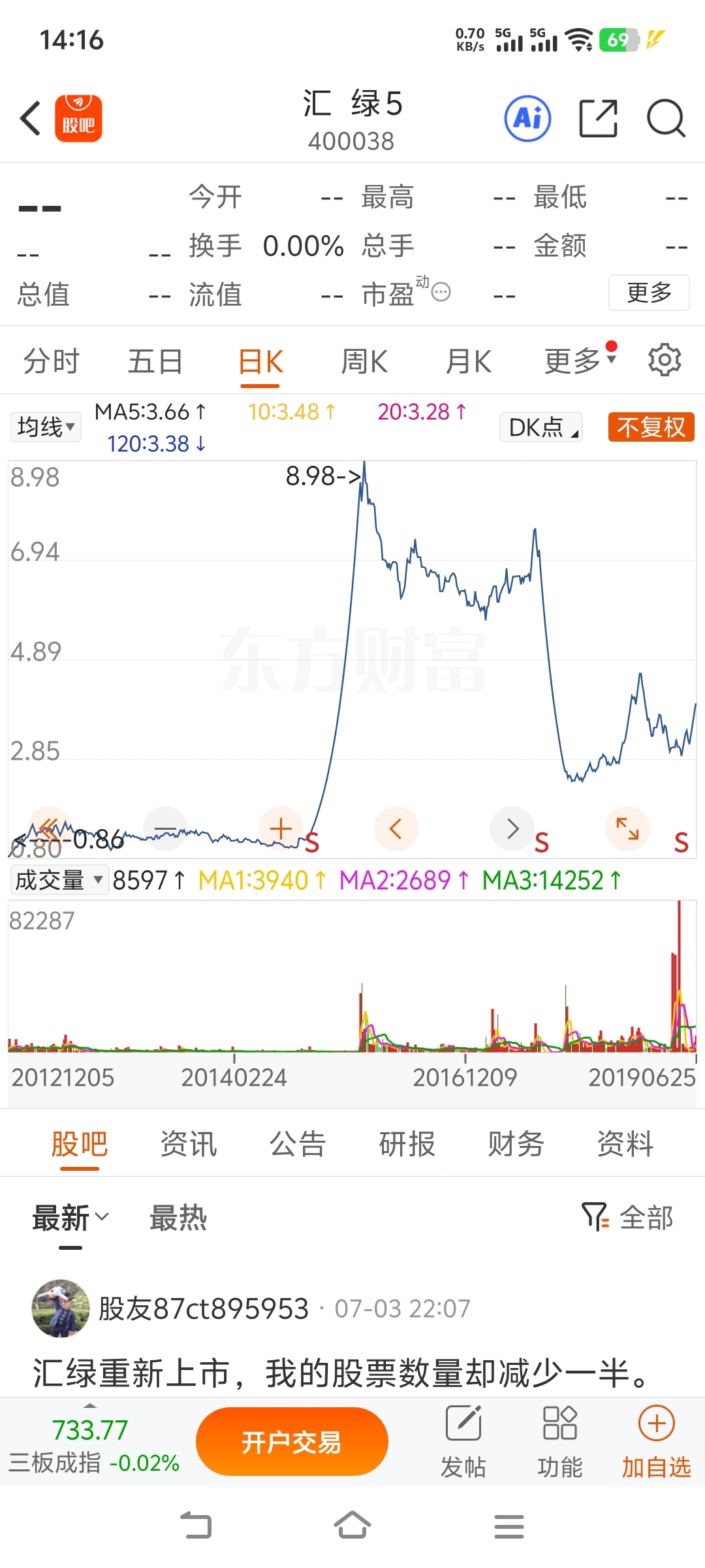 $*ST东通(SZ300379)$ 用那最不行的来对比,这种三板股你咋不拿出来对比呢?给你机会你中用了么?总拿最不行的对比,请问哪个不是正股跌下来的,你还玩正股干嘛?三板没有几元股么?三板大牛股也多了你抓了么?你不行就说说你不行,别赖赖其他的,正股不行你照样亏的裤衩不剩,看看你买的那股怎么有脸敢评价我的