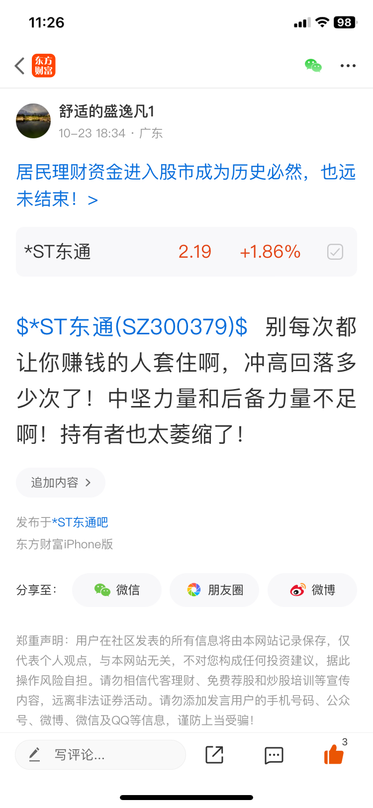 温馨提示: 1.根据《证券法》规定,禁止编造、传播虚假信息或者误导性信息,扰乱证券市场;2.用户在本社区发表的所有资料、言论等仅代表个人观点,与本网站立场无关,不对您构成任何投资建议。用户应基于自己的独立判断,自行决定证券投资并承担相应风险。《东方财富社区管理规定》