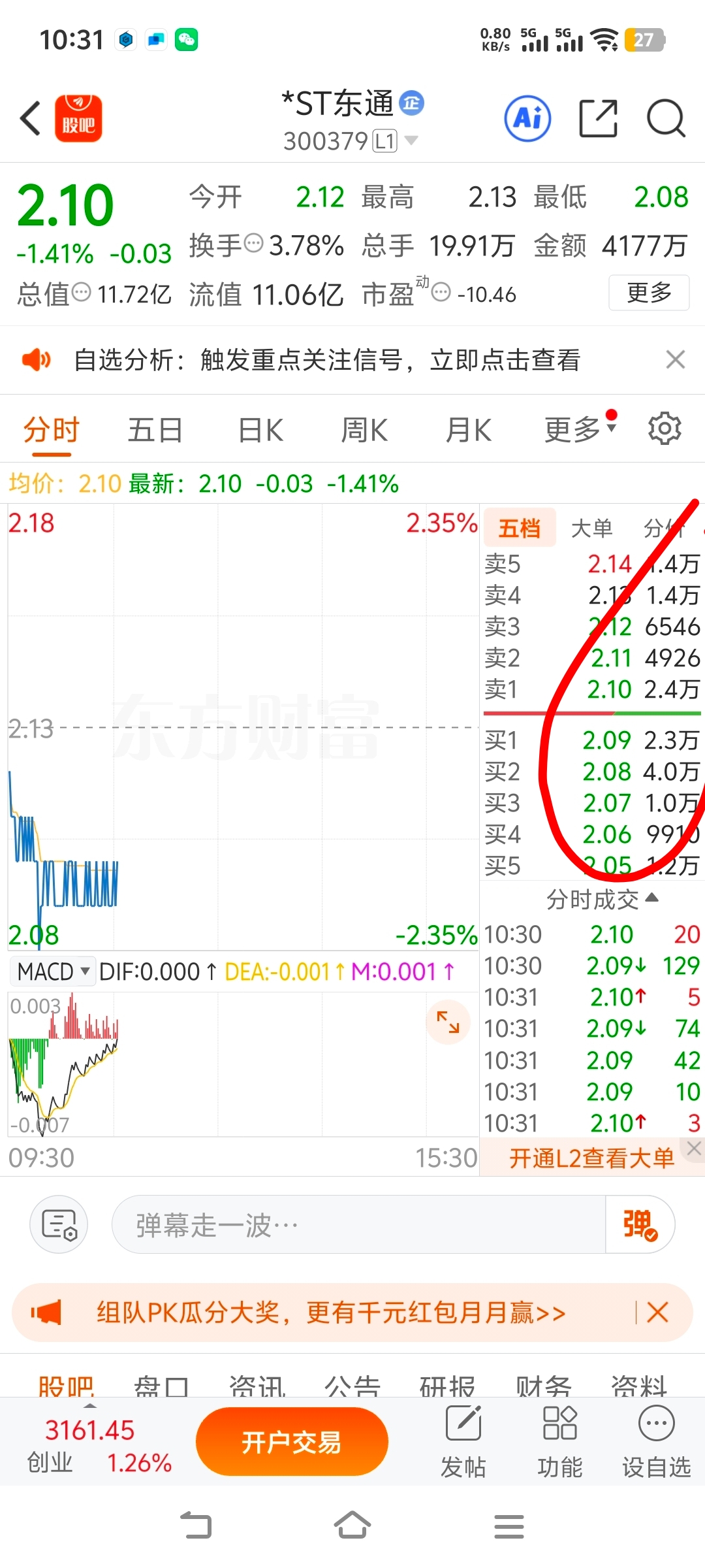 $*ST东通(SZ300379)$ 这里边没几个散户挂单,庄通过这个再加手续费砸盘表演告诉散户交筹码吧,庄已经买一准备好接受筹码了,等怎么表演没卖的时候才会拉升