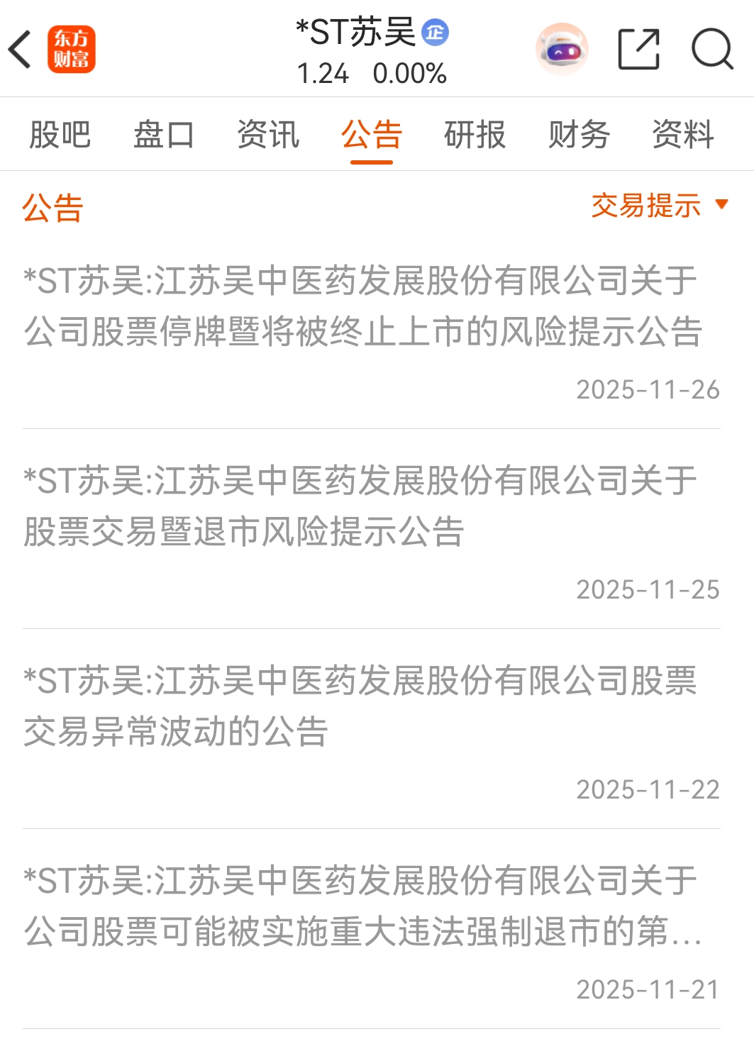 ST苏吴21号还在提示可能退市,26号就被正式退市了。ST东通应该过5天也会被正