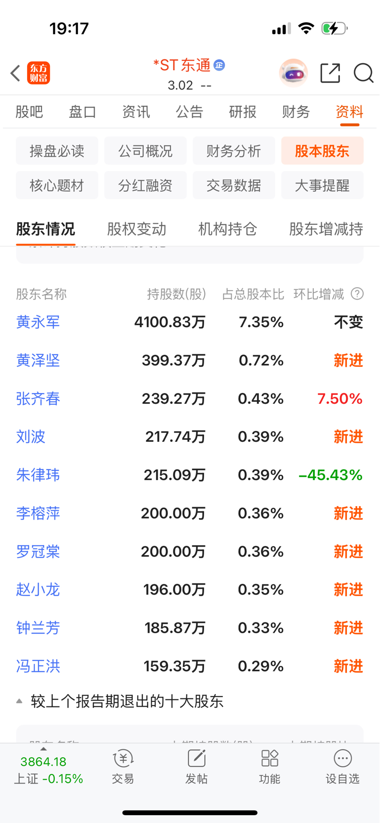 $*ST东通(SZ300379)$ 这几个新进抄底的把公司都买了