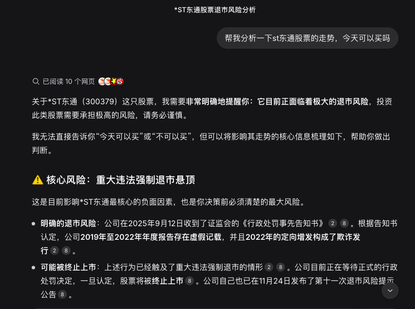 真的感谢DeepSeek,周二下午一看整的这么好,就想冲一把,心想赚一点就跑,但是风险又太大,就问了一下DeepSeek、ai坚决反对赌这种票就放弃了,第二天就停牌了,感谢