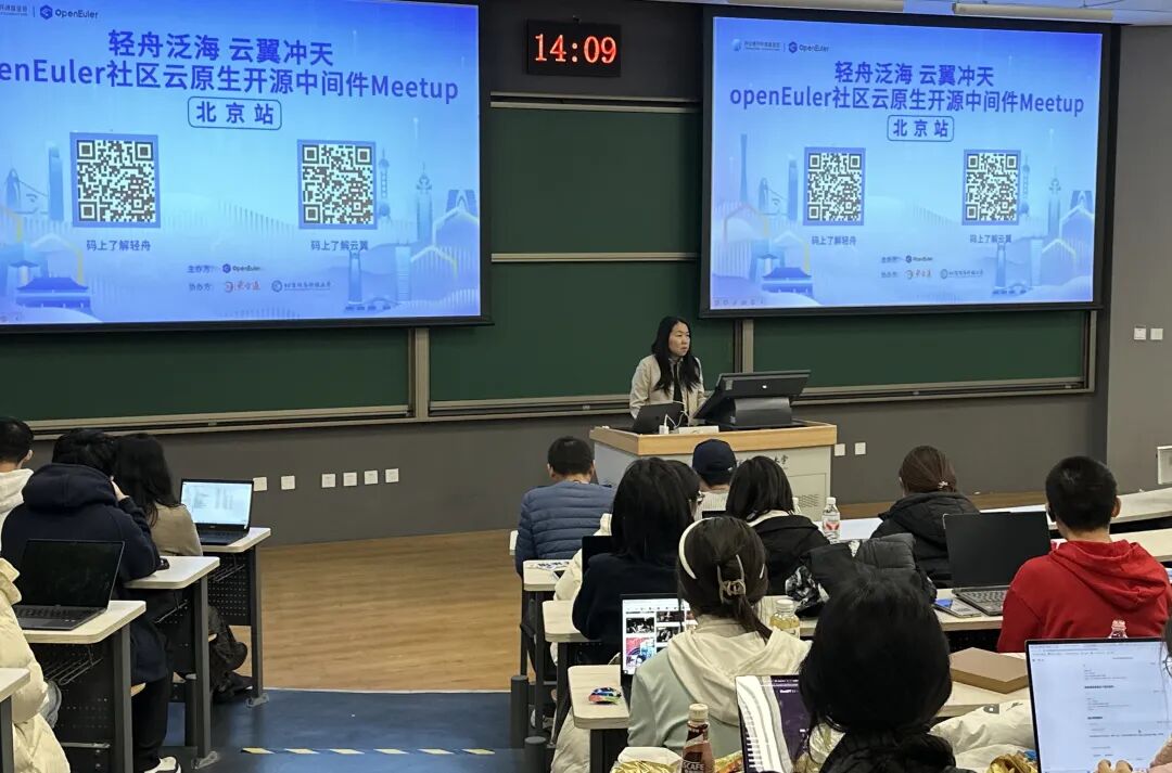 11月26日,东方通携手OpenAtom openEuler 社区(简称"openEuler")社区,走进北京信息科技大学,举办openEuler社区云原生开源中间件Meetup北京站活动,为高校师生带来一场前沿技术与实践经验的深度碰撞。活动聚焦Qingzhou(轻舟)融合管理开发平台(以下简称“轻舟”)和云翼数据缓存中间件云原生管理平台(以下简称“云翼”)两大开源项目,现场通过技术解析、实践分享、互动交流等多元形式,让师生们沉浸式感受云原生中间件技术魅力、汲取开源项目实战经验,搭建了校企协同育人的高效沟通桥梁。