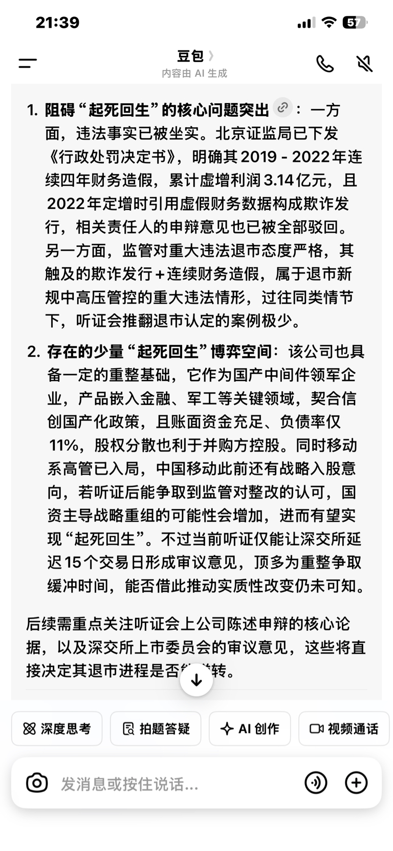 凡是进入听证的,99.9%退市,除非国资移动控股。