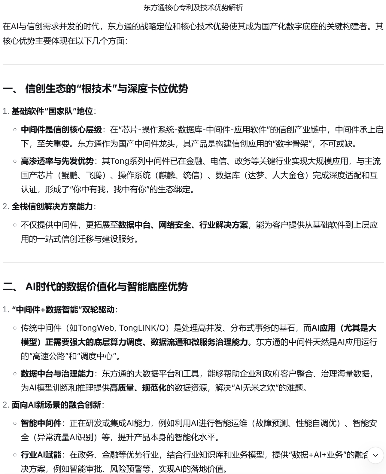 大家一起分析分析东方通的行业地位,和国家战略地位和未来业务增长点。我通过AI整理