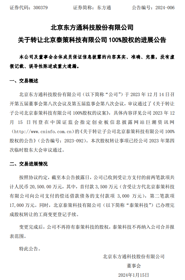 泰策已经剥离了,钱已经到账了,什么作废退钱都来了,这个不是儿戏。