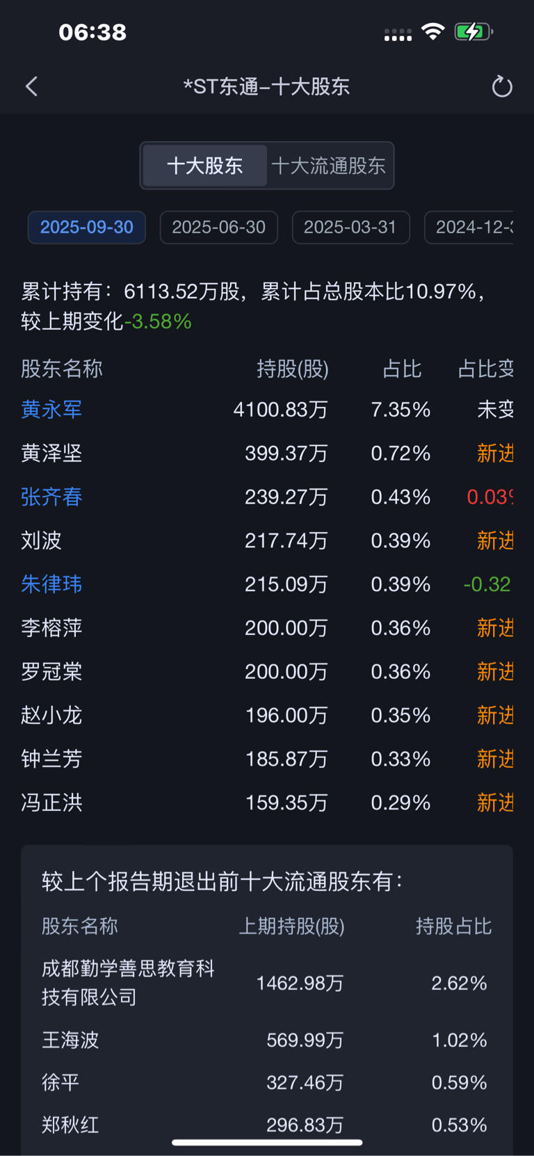 虽然我也买了几万块对比了前面和现在的十大股东感觉悬了现在都是个人散户持股,不容乐