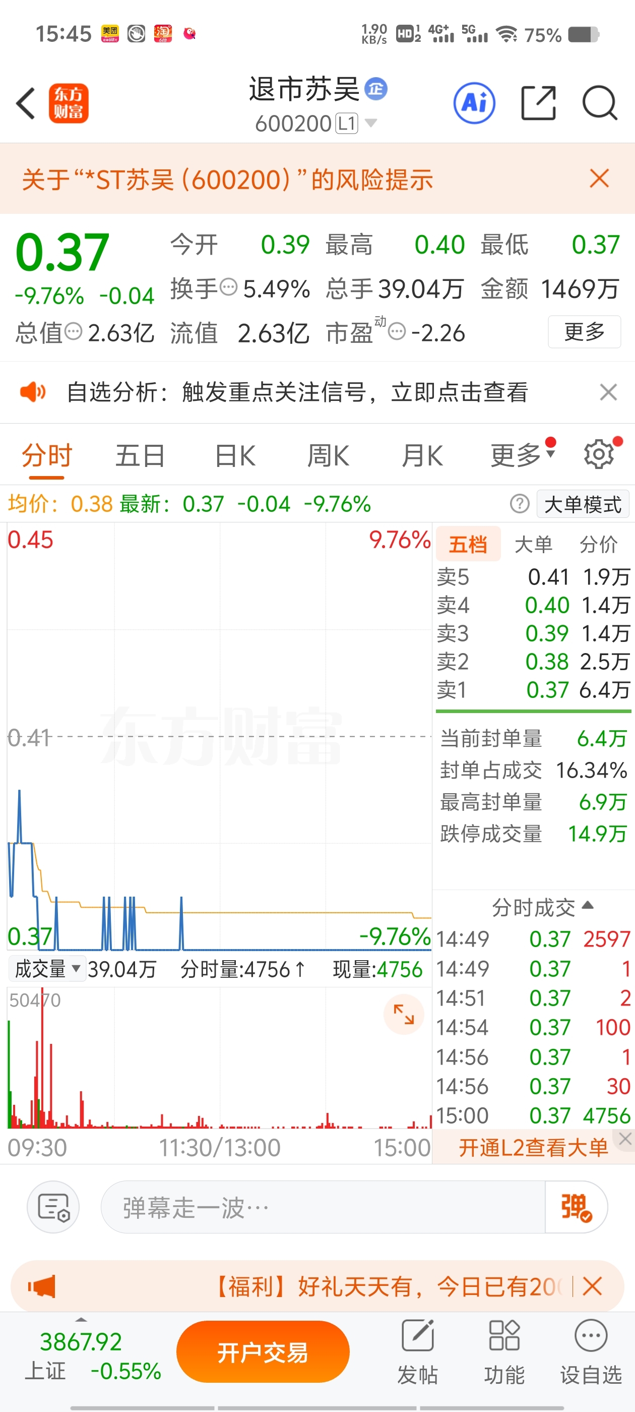 $*ST东通(SZ300379)$ 阿吴退市整理期最后一天估计也只剩一毛了。直接跌幅10倍。东方通退市整理期最后一天估计是3毛。东方通欺诈发行,财务违规。估计去三板是东方3而不是东方5。