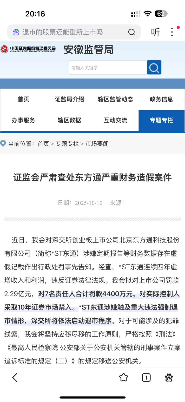 继续幻想,东方通是2025年查处的重大违法第一典型,股市成立以来的罚款金额第二典型,哈哈,你知道典型的下场吗?哈哈,还幻想呢,