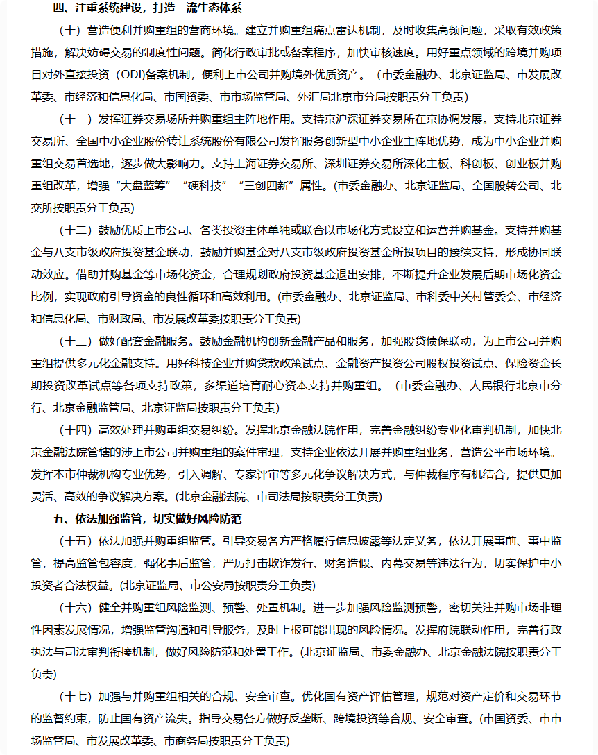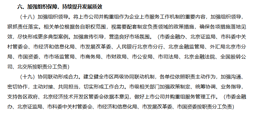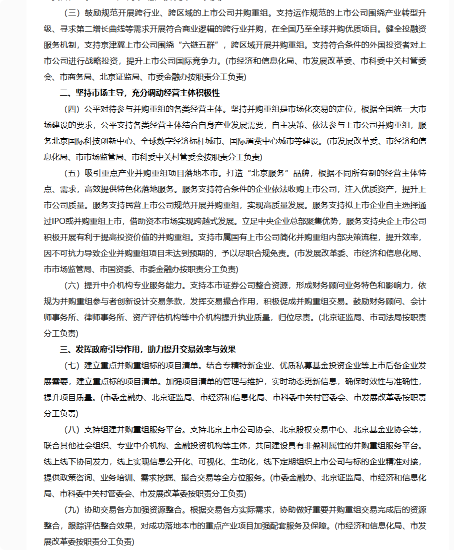 北京市委金融委员会办公室等七部门关于助力并购重组促进上市公司高质量发展的意见