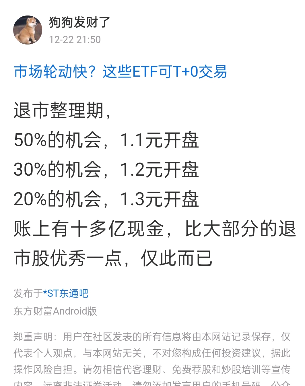 $*ST东通(SZ300379)$ 退市整理期第一天跌幅开盘价跌幅55%到65%之间。ST苏吴退市整理期第一天下跌67%,东方通里面的哥哥姐姐们认命吧。