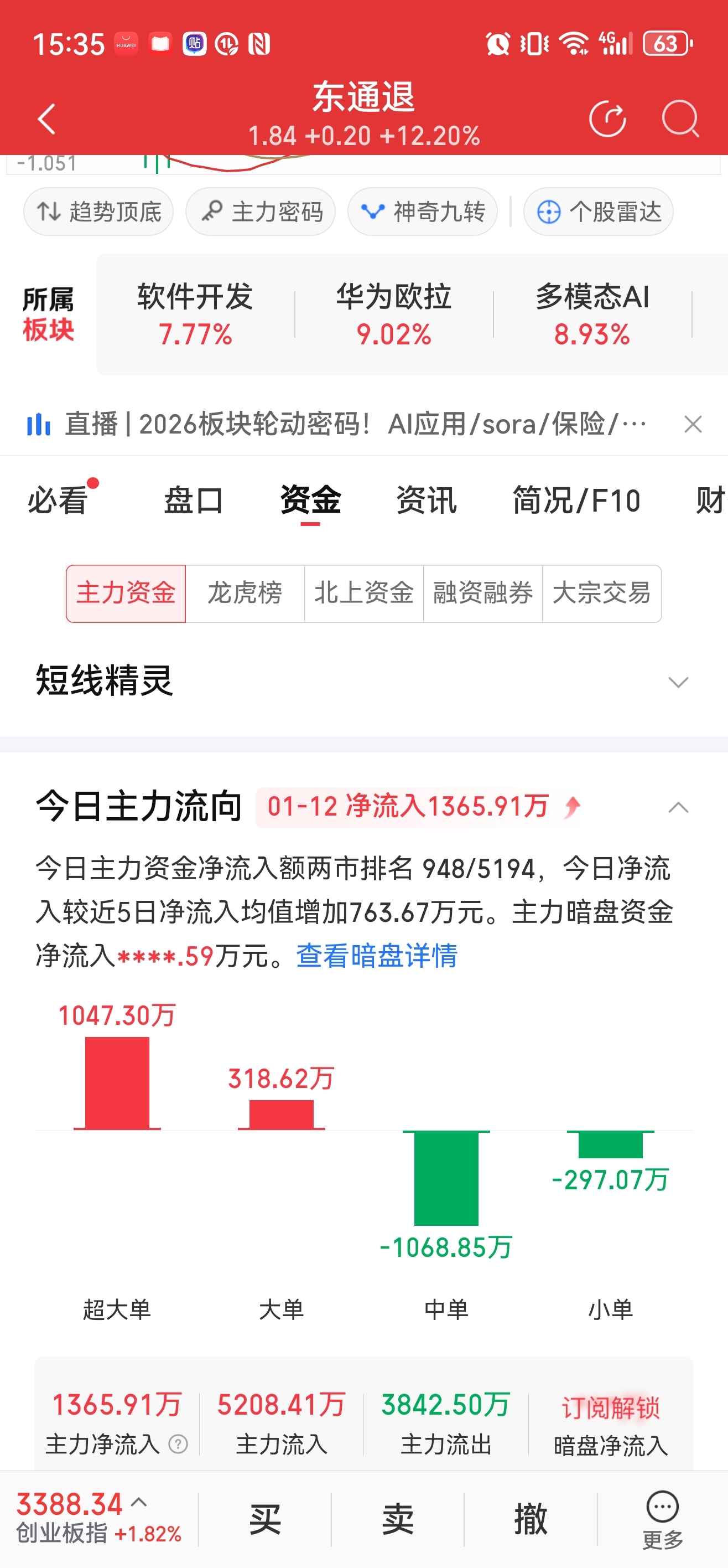 $东通退(SZ300379)$ 这说明啥流入1000多万。