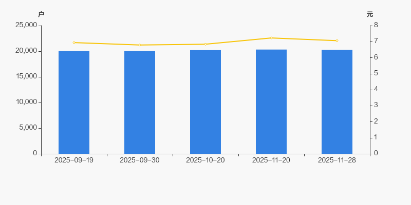 2025年9月19日至今,公司股东户数有所增长,区间涨幅为1.15%。2025年9月19日至2025年11月28日区间股价上涨1.73%。