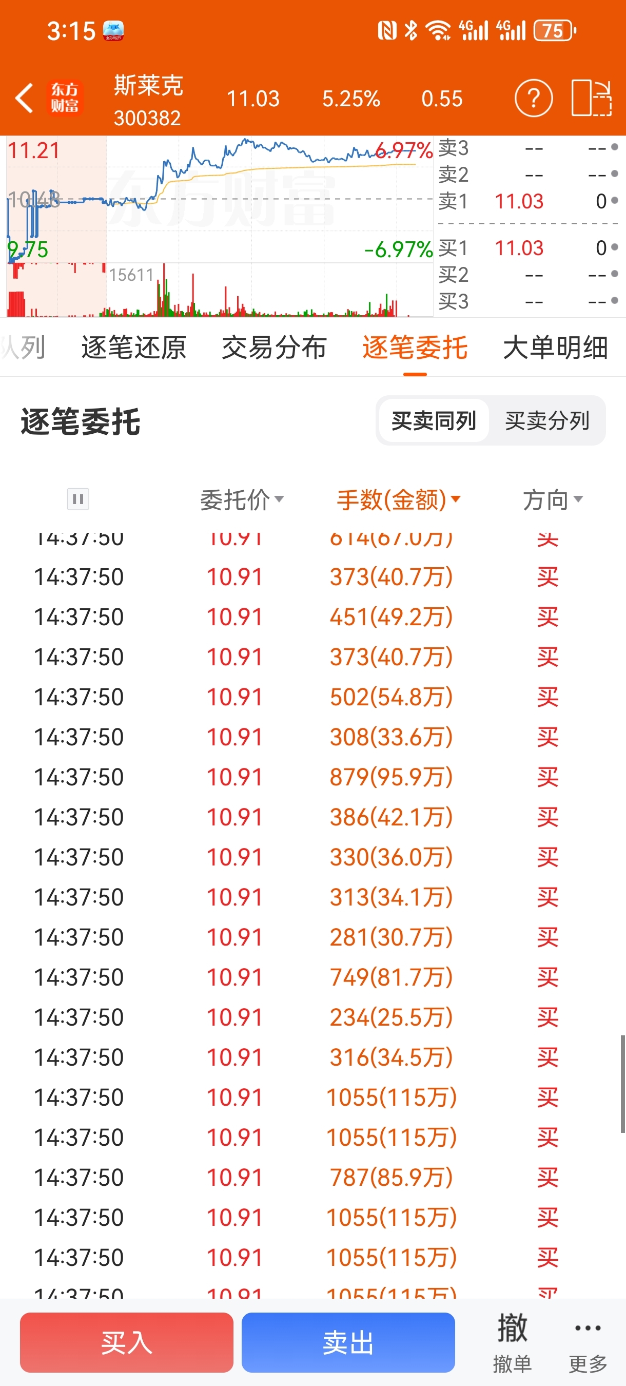 $斯莱克(SZ300382)$ 为什么一秒钟突然那么多挂单,一秒出现一秒消失,没有显示成交