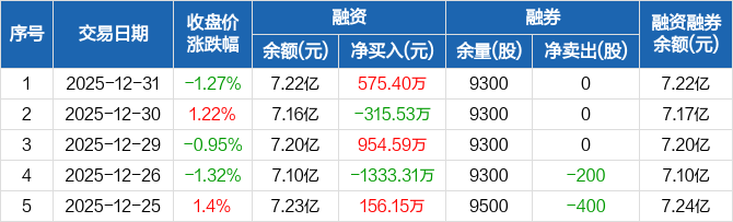 斯莱克:融资净买入575.4万元,融资余额7.22亿元(12-31)