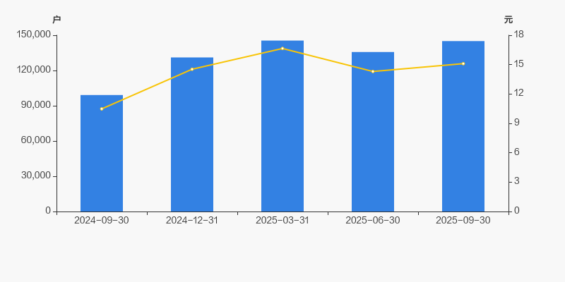 2024年9月30日至今,公司股东户数显著增长,区间涨幅为46.31%。2024年9月30日至2025年9月30日区间股价上涨44.15%。