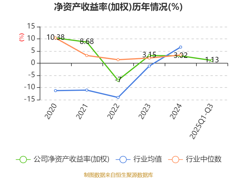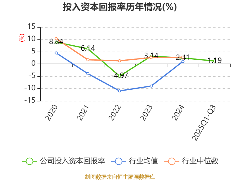 盈利能力方面, 2025年前三季度公司加权平均净资产收益率为1.13%,同比下降1.74个百分点。公司2025年前三季度投入资本回报率为1.19%,较上年同期下降1.25个百分点。