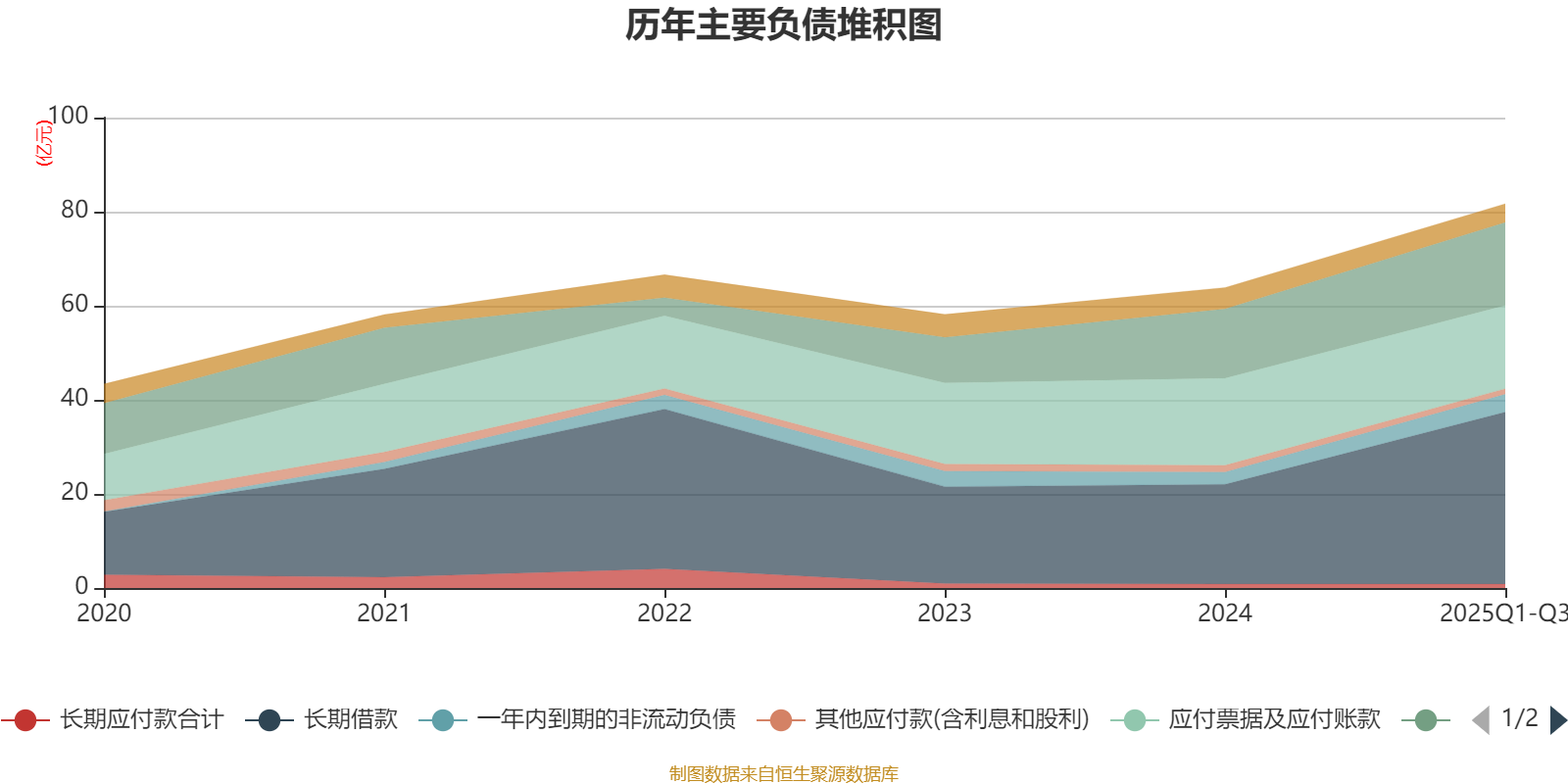 负债重大变化方面,截至2025年三季度末,公司长期借款较上年末增加72.54%,占公司总资产比重上升6.24个百分点;应付票据及应付账款较上年末减少4.3%,占公司总资产比重下降1.18个百分点;短期借款较上年末增加19.93%,占公司总资产比重上升0.73个百分点;一年内到期的非流动负债较上年末增加44.61%,占公司总资产比重上升0.43个百分点。