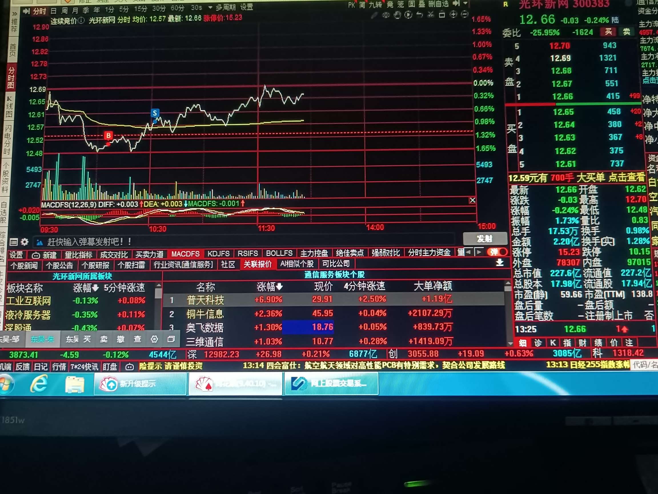 $光环新网(SZ300383)$ 300383今天12.49买进,12.59卖出T了。平均成本12.52元,下面就是我的成本线。