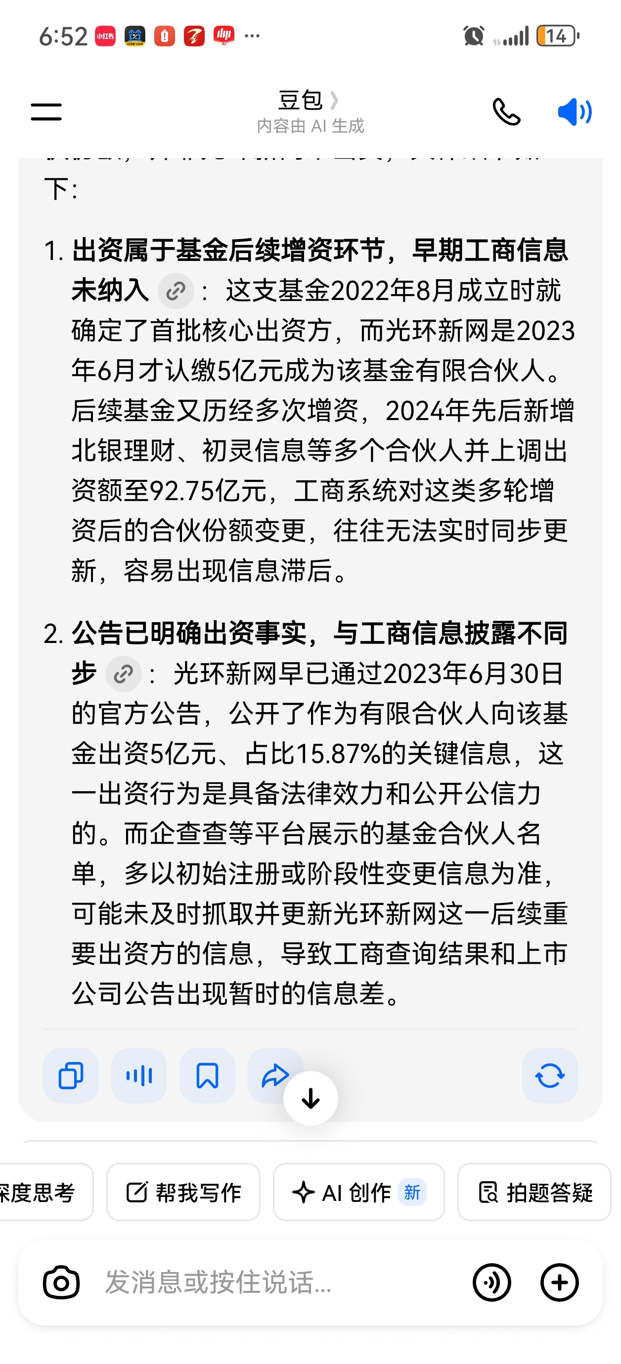 $光环新网(SZ300383)$ 究竟有没有投资摩尔线程相关基金,为何不涨?