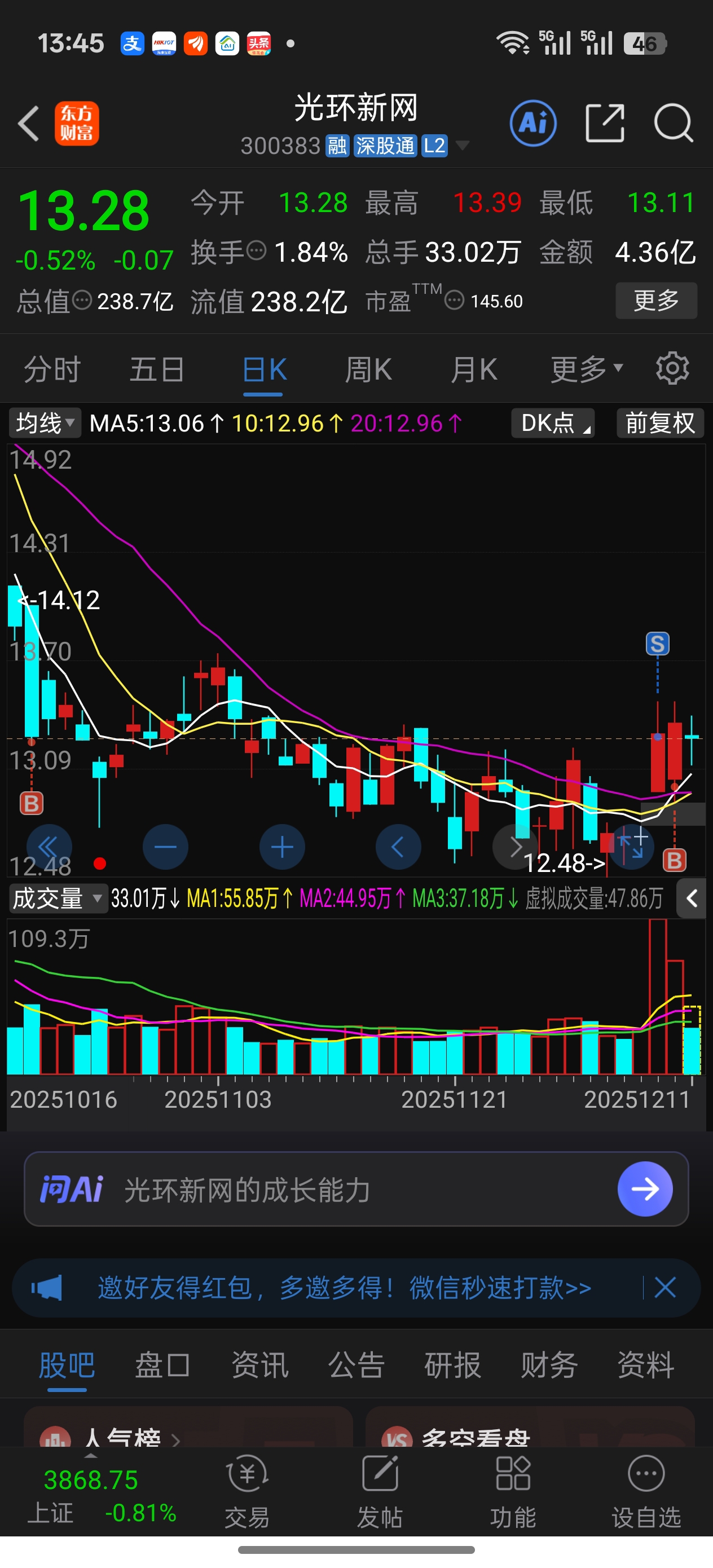 $光环新网(SZ300383)$ 别拉!我等你下来