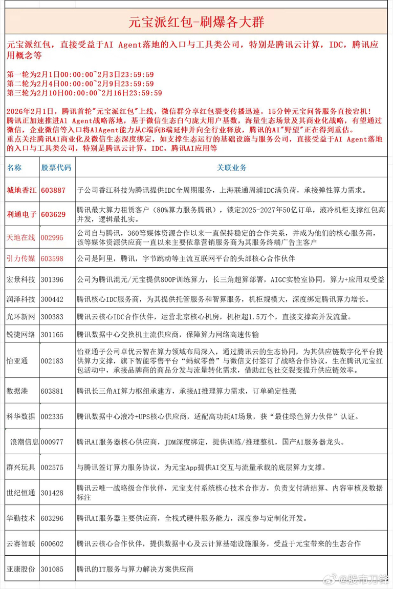 对A股来说,量化时代消息驱动是非常重要的。腾讯元宝概念+AI应用方向,可能是本周