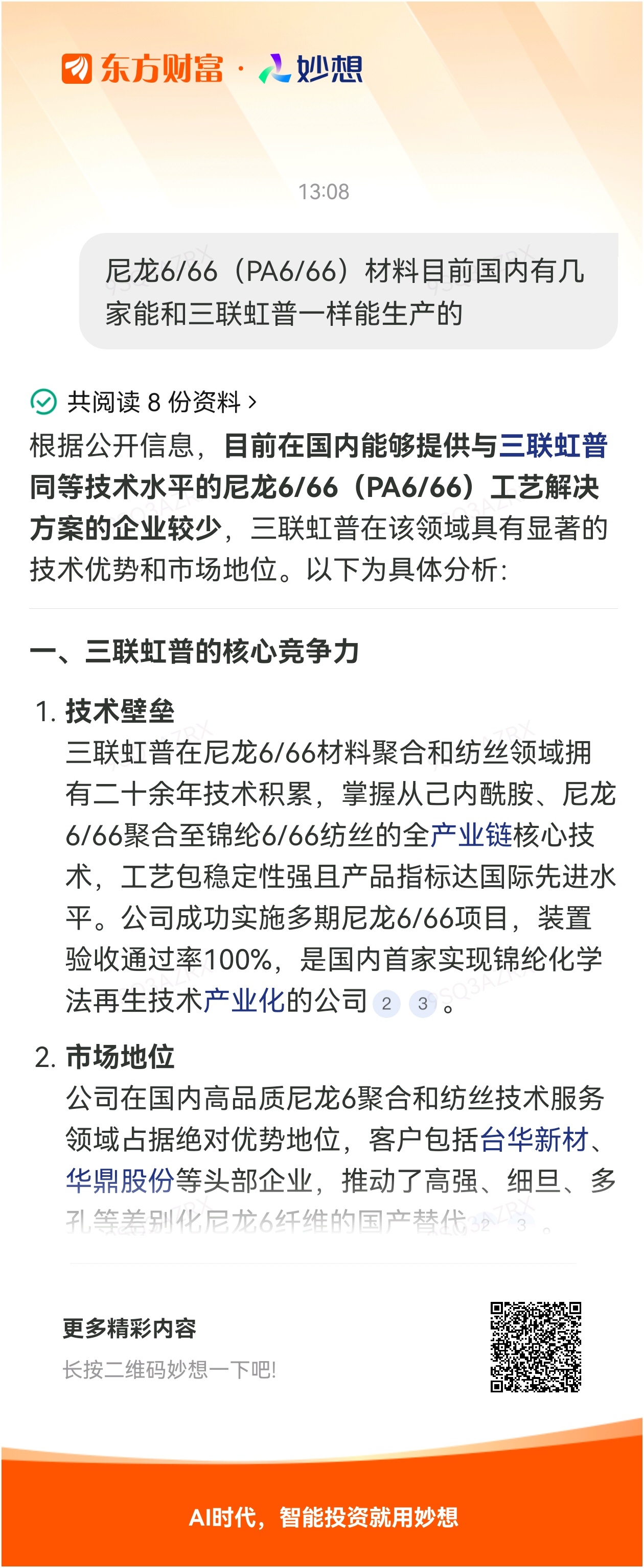 #@妙想,你怎么看?# 妙想一下:尼龙6/66(PA6/66)材料目前国内有几家能和三联虹普一样能生产的