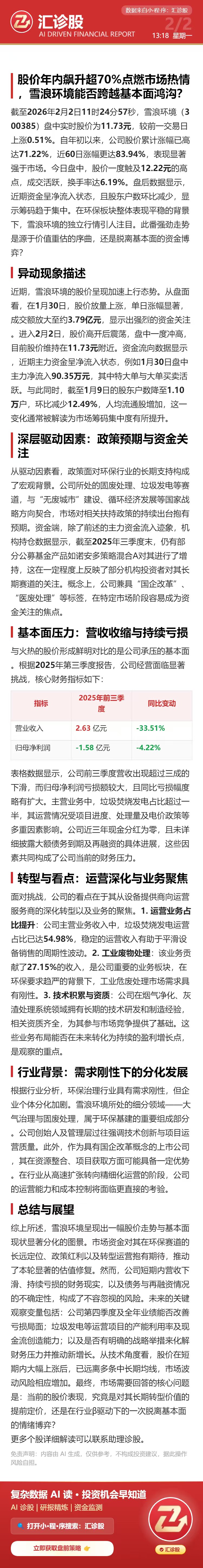 股价年内飙升超70%点燃市场热情,雪浪环境能否跨越基本面鸿沟?