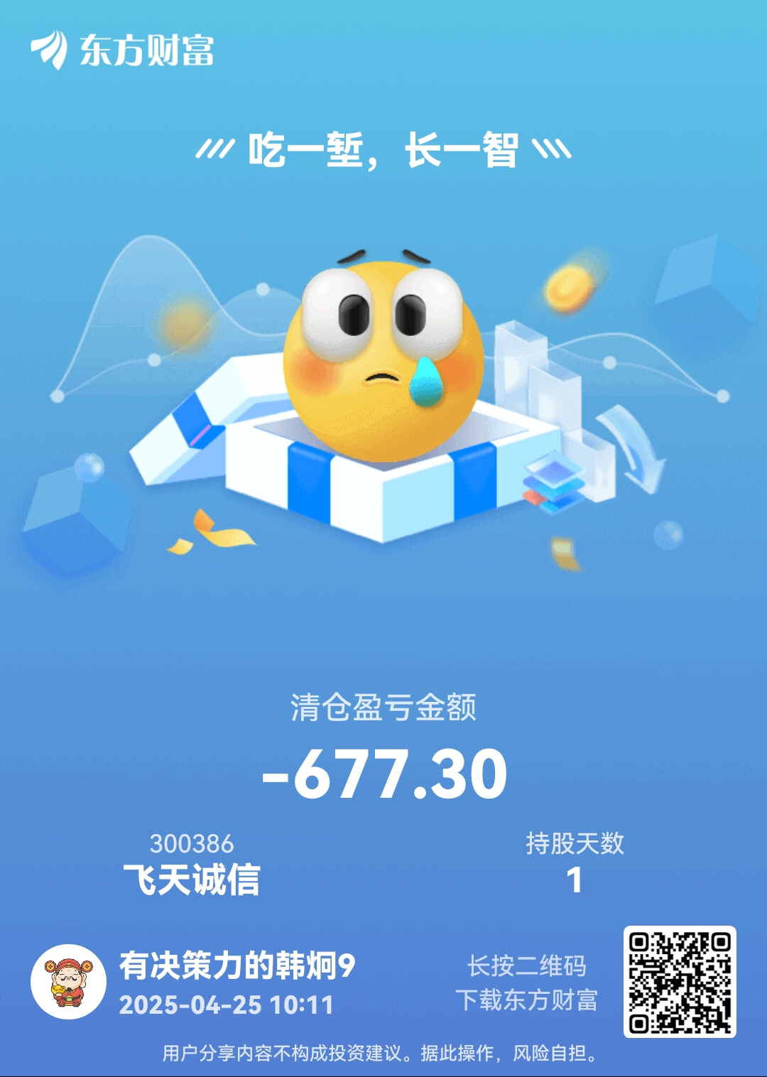 温馨提示: 1.根据《证券法》规定,禁止编造、传播虚假信息或者误导性信息,扰乱证券市场;2.用户在本社区发表的所有资料、言论等仅代表个人观点,与本网站立场无关,不对您构成任何投资建议。用户应基于自己的独立判断,自行决定证券投资并承担相应风险。《东方财富社区管理规定》