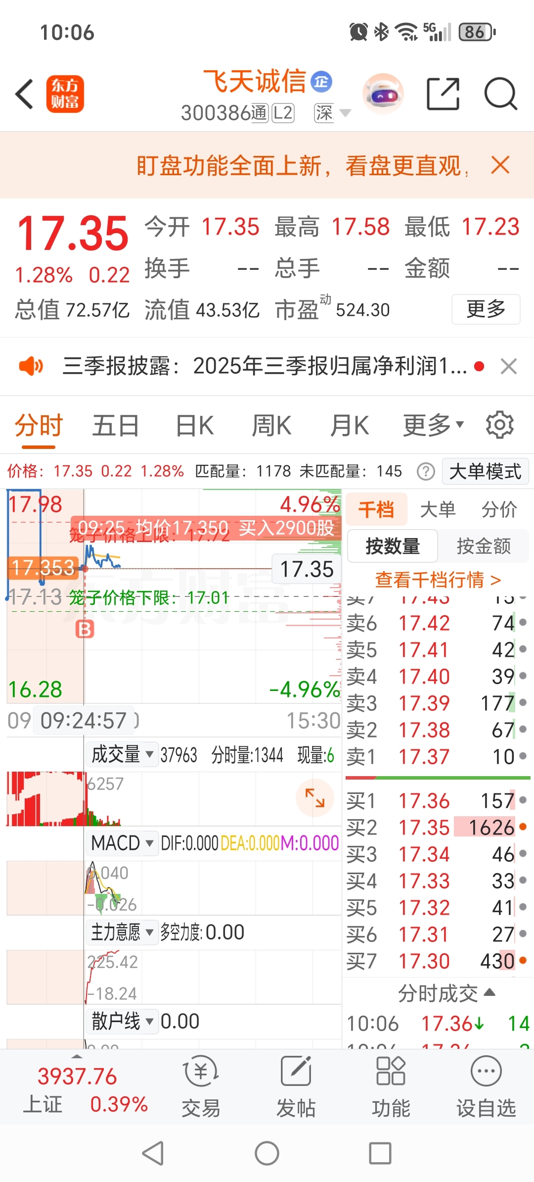 $飞天诚信(SZ300386)$ 该死的T+1,想跑跑不了