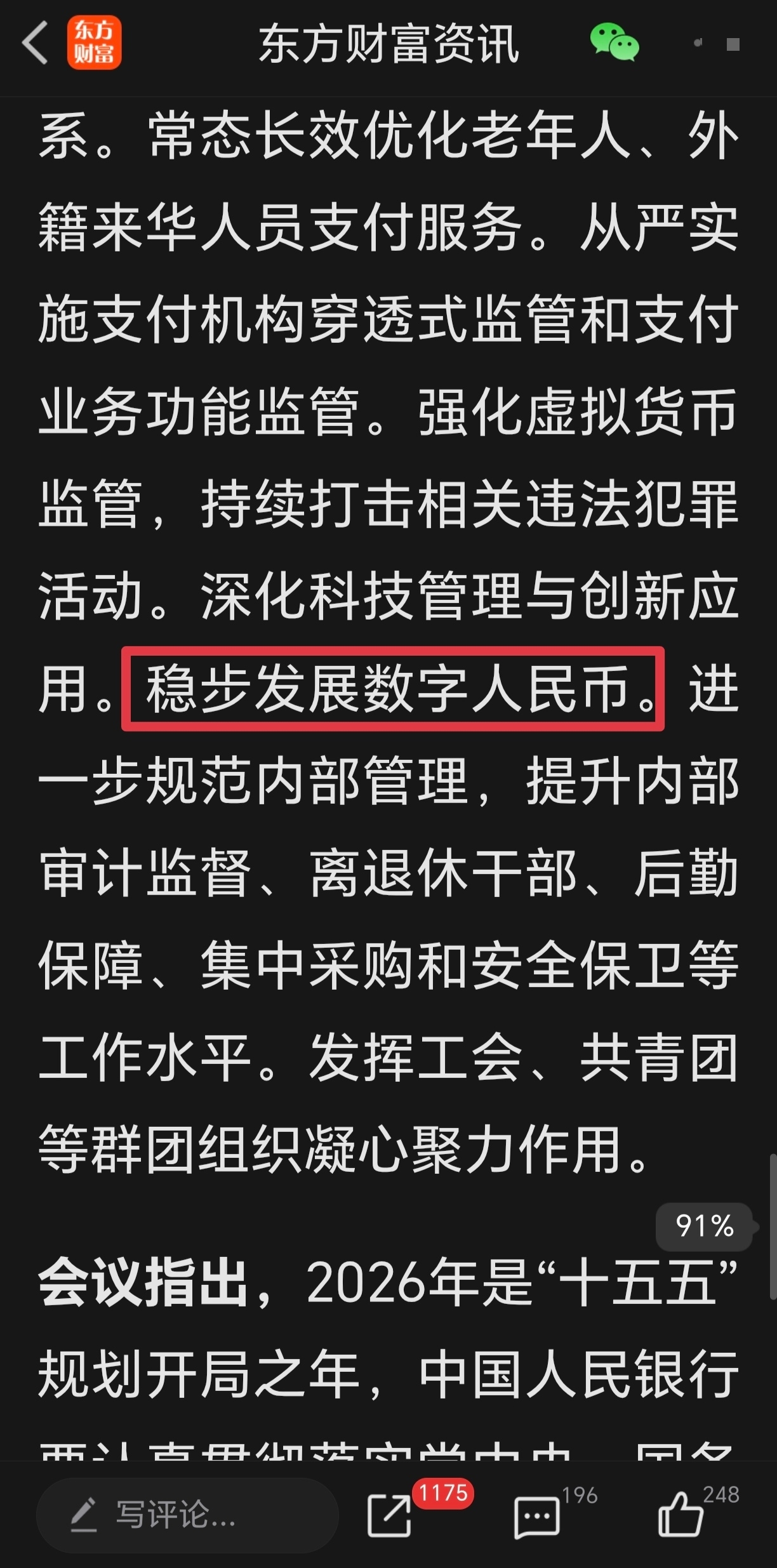 2026年中国人民银行工作会议在年度重点工作中首次提出“稳步发展数字人民币”