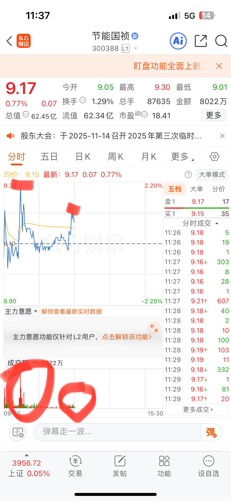 $节能国祯(SZ300388)$ 湖北250已三角猫功夫告诉你们,不要看分时图,早上冲高接盘!我告诉大家要看,上午那么大成交量都要掉下来,何况现在这么点量能上去!还是那句话11月份最起码跌幅15个点以上