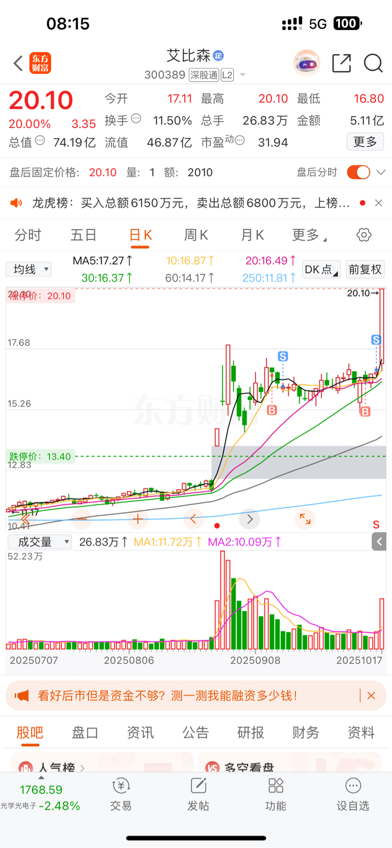 $艾比森(SZ300389)$ 昨天尾盘 感觉大盘 不行走的 买的首燃气 一个点卖的 没这命