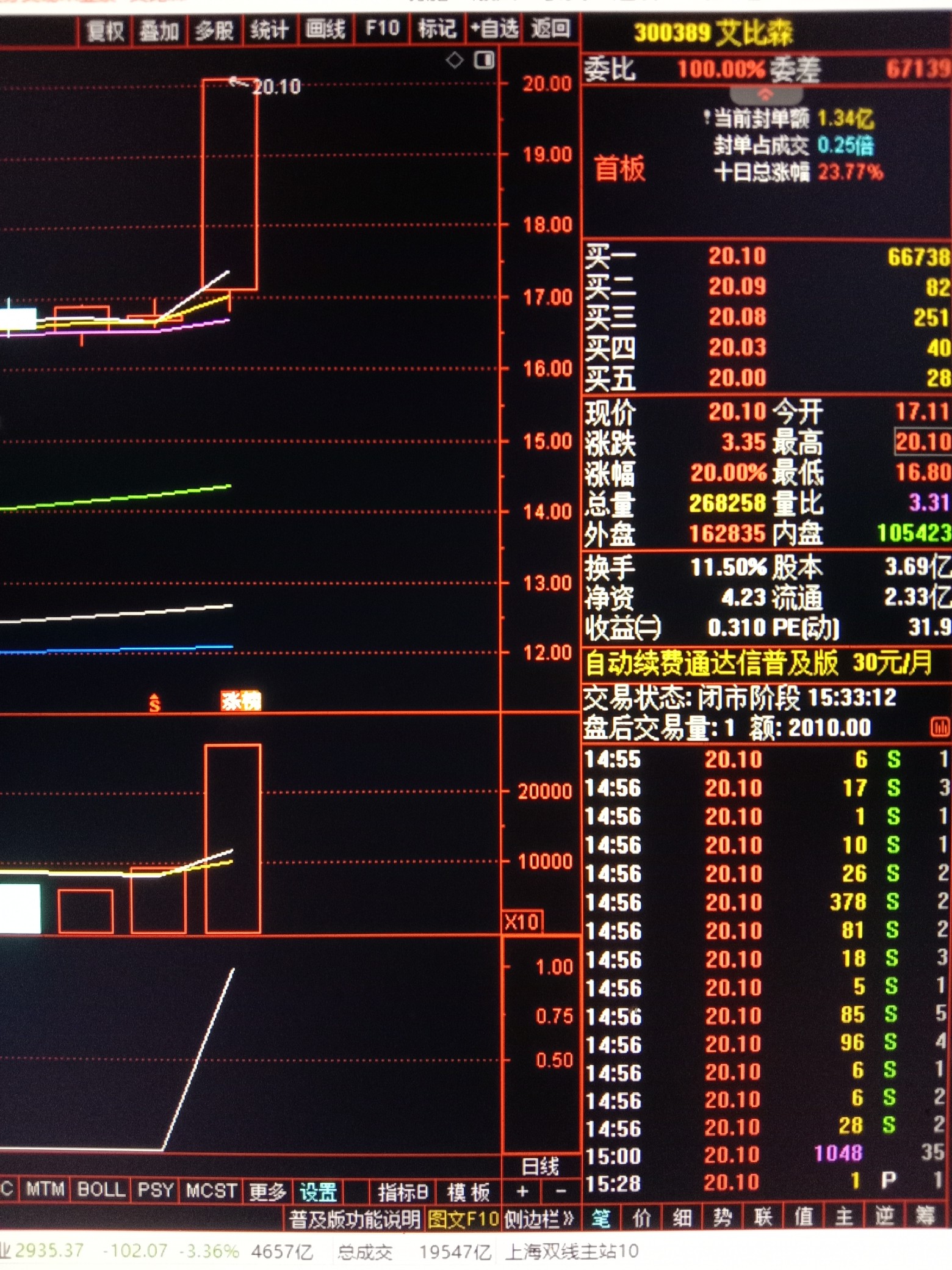 $艾比森(SZ300389)$ 做股票不要追高更不要打板,想实现稳定复利就要做低位竞价首板,龙抬头竞价首板王选股软件,开盘前竞价选股不做马后炮,买在低位3个点左右,博当天或者次日溢价甚至首板涨停!龙抬头竞价首板王专门抓20厘米首板涨停!