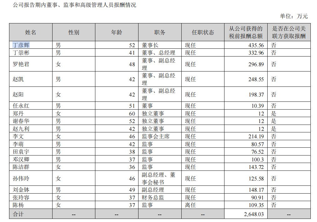 在薪酬方面,丁彦辉2024年从公司获得的税前报酬总额为435.56万元,其中包含员工持股计划的本金和收益173.99万元。而在2023年,丁彦辉的年薪为288.45万元;在2022年,丁彦辉的年薪为284.78万元。由此计算,仅2024年这一年时间,丁彦辉薪资增幅达到51%。