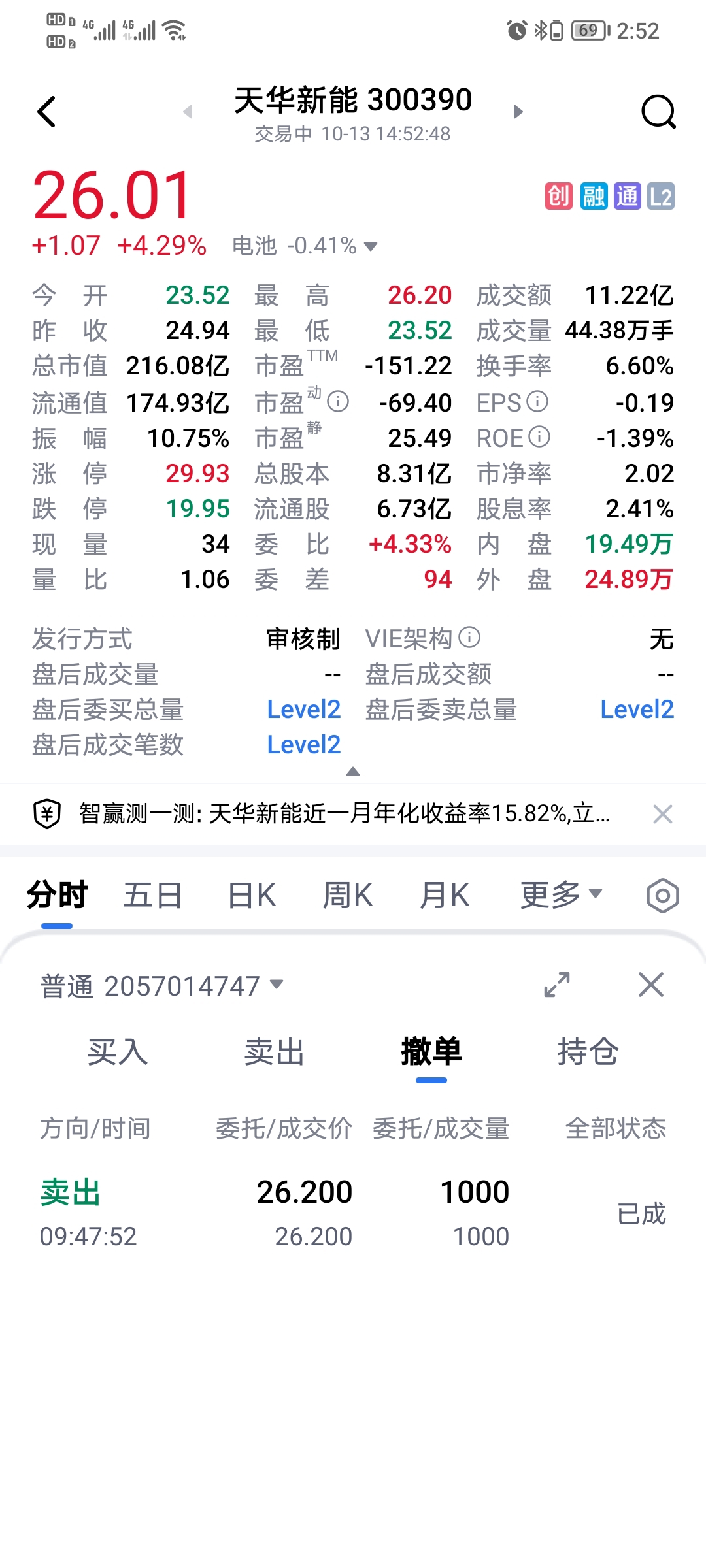 $天华新能(SZ300390)$ 上午随便挂的单成交了