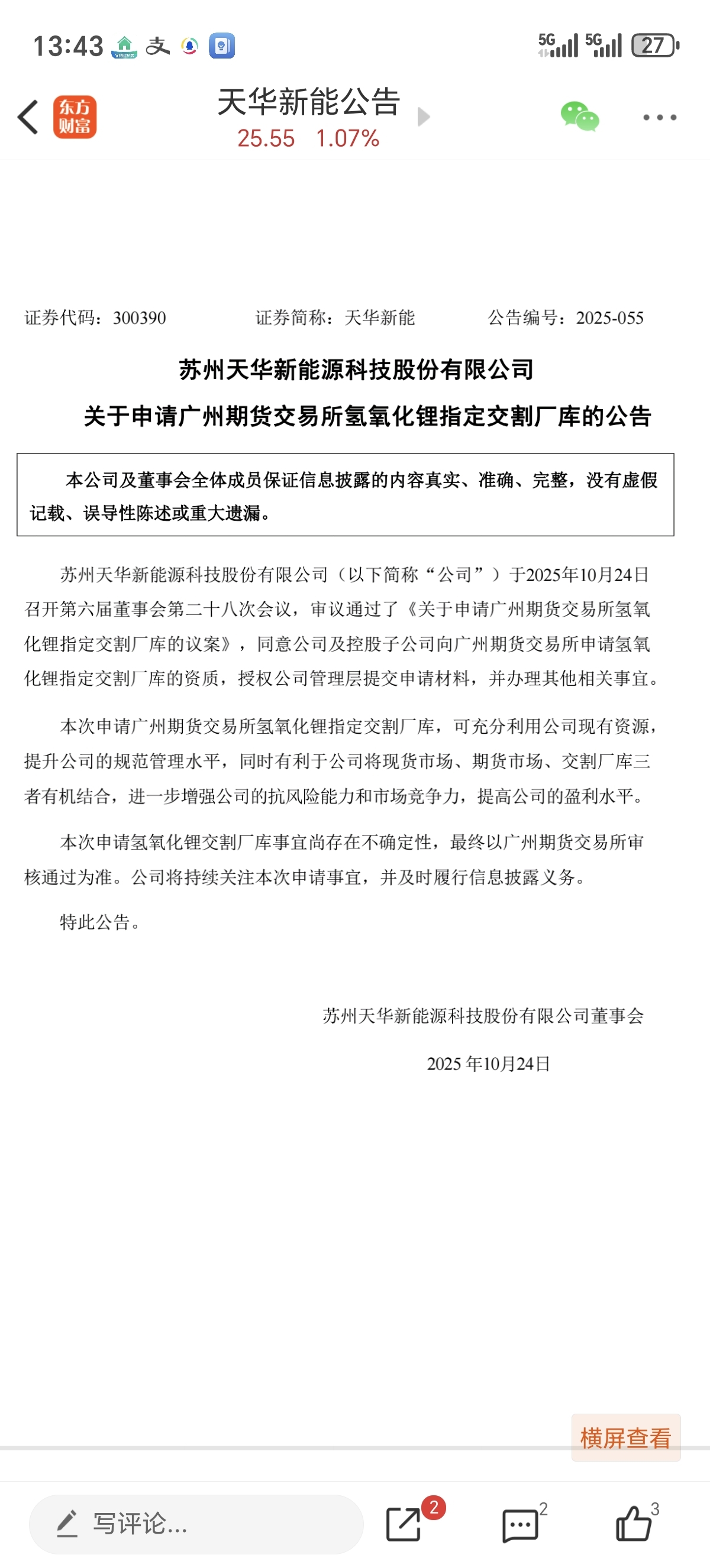 $天华新能(SZ300390)$ 我想问下,这个是利好还是利空,请课代表解释下
