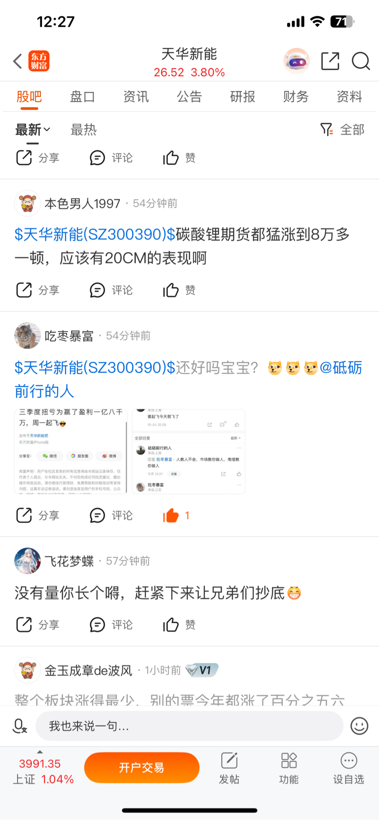 温馨提示: 1.根据《证券法》规定,禁止编造、传播虚假信息或者误导性信息,扰乱证券市场;2.用户在本社区发表的所有资料、言论等仅代表个人观点,与本网站立场无关,不对您构成任何投资建议。用户应基于自己的独立判断,自行决定证券投资并承担相应风险。《东方财富社区管理规定》