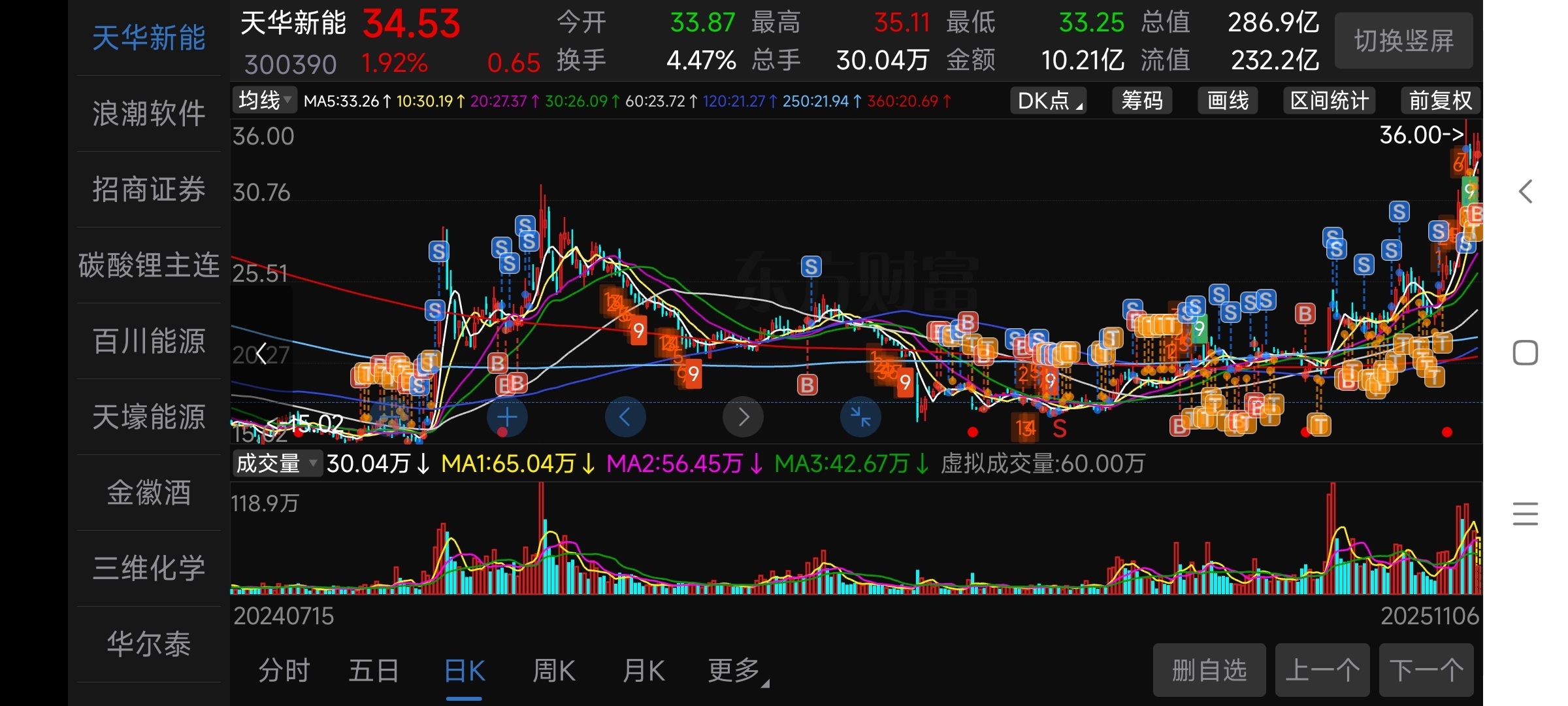 三次建仓,第一次是15块多,涨到25左右清仓的,第二次23附近买了个底仓,第二天