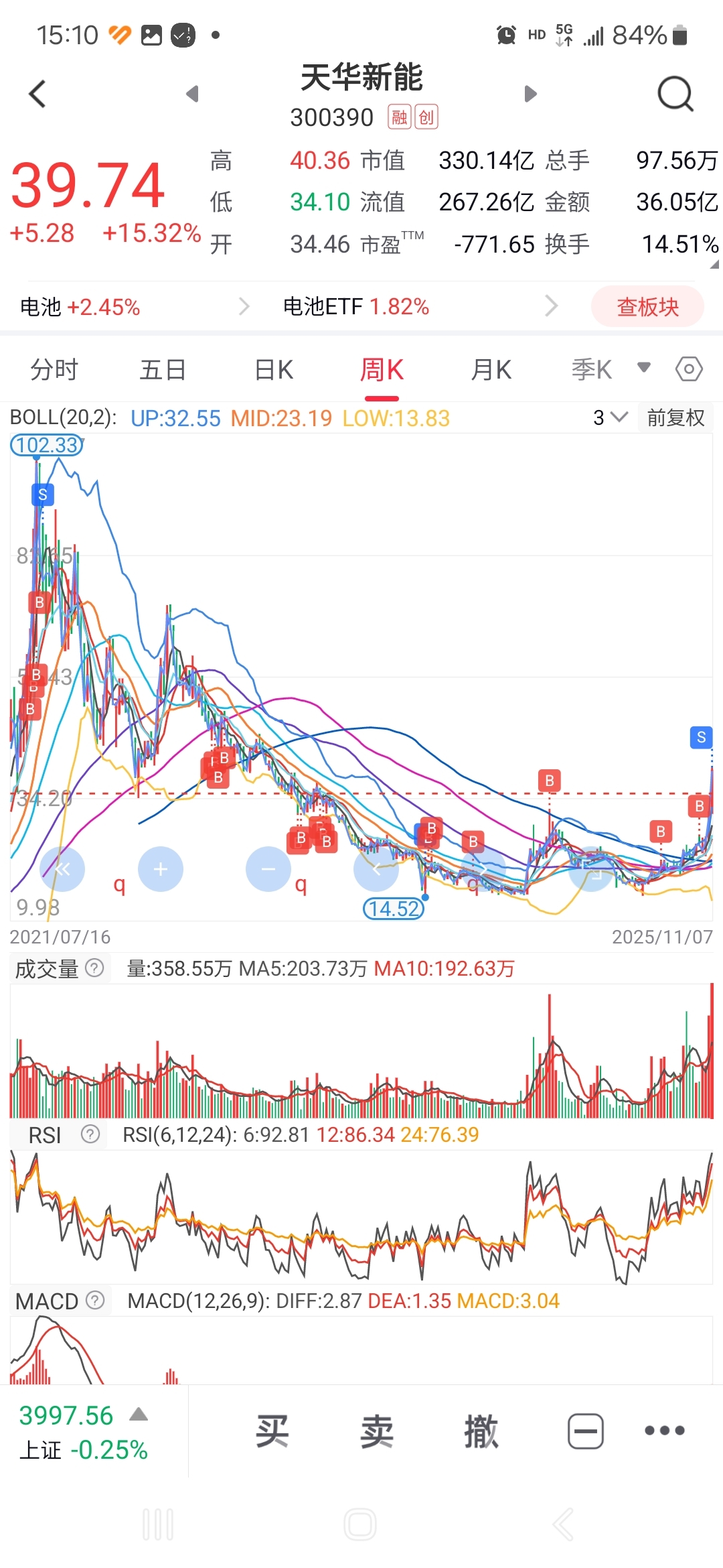 $天华新能(SZ300390)$ 套三年多了,懂我的兄弟点赞!出了一小部分,是这几年低位补仓的,还有大几十万!下周攻防皆可