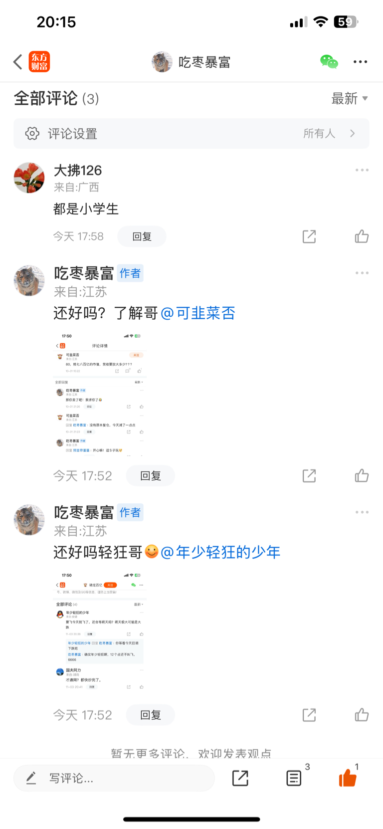 温馨提示: 1.根据《证券法》规定,禁止编造、传播虚假信息或者误导性信息,扰乱证券市场;2.用户在本社区发表的所有资料、言论等仅代表个人观点,与本网站立场无关,不对您构成任何投资建议。用户应基于自己的独立判断,自行决定证券投资并承担相应风险。《东方财富社区管理规定》