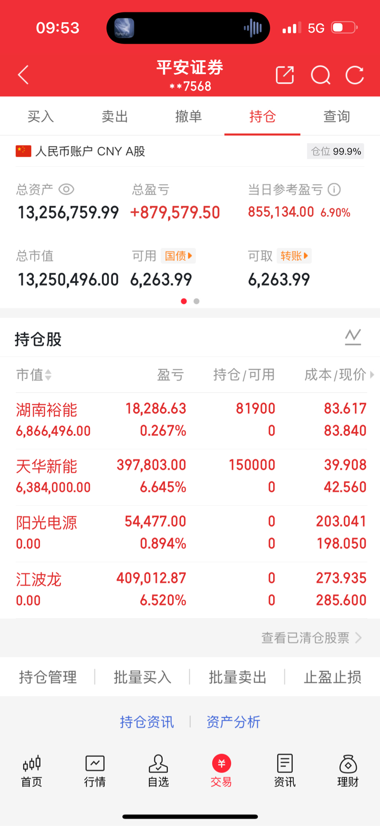 年前准备上两千万,现在是一千三百二十万,大家关注一起见证今天出江波龙,阳光电源今