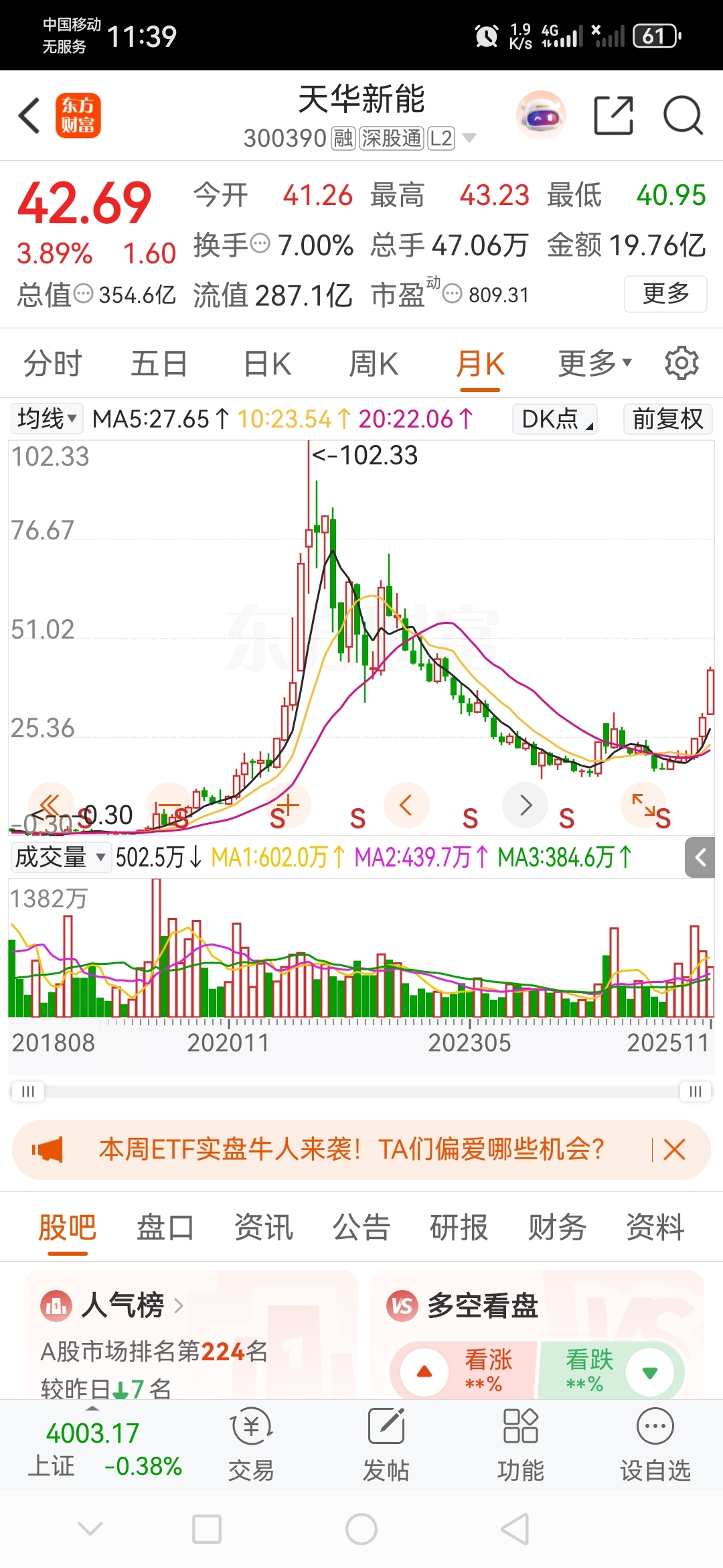 $天华新能(SZ300390)$ 2021年都涨到100多,今天为何就不能涨到80以上呢!