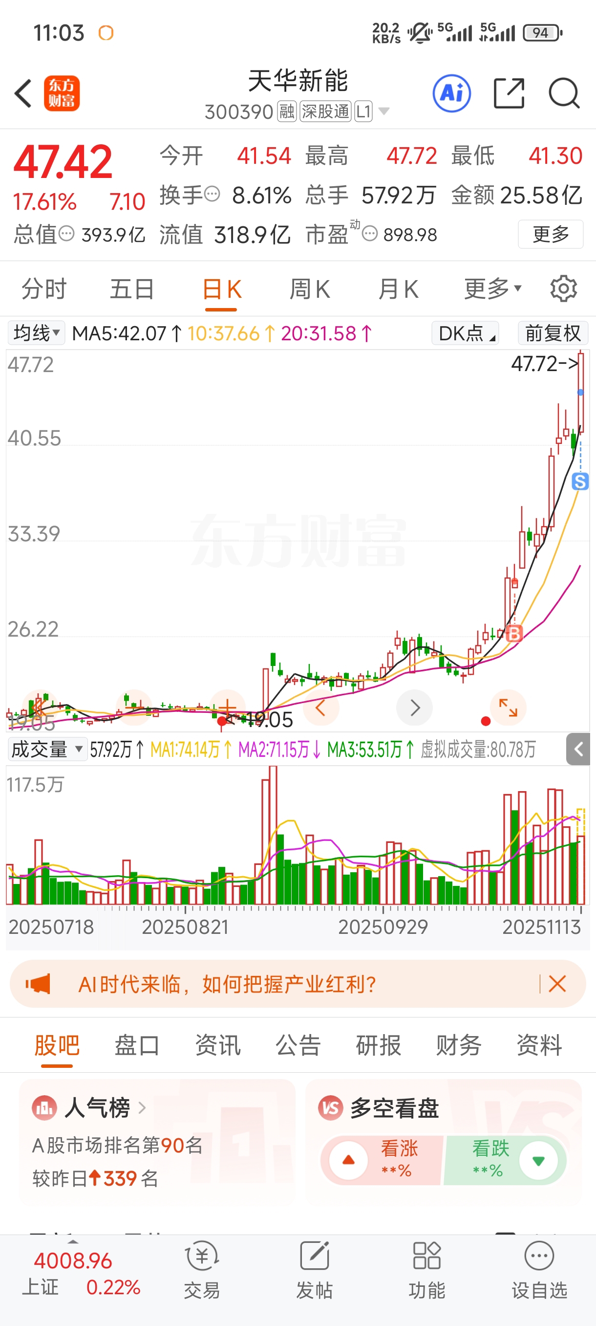 $天华新能(SZ300390)$ 卖飞了,知足常乐