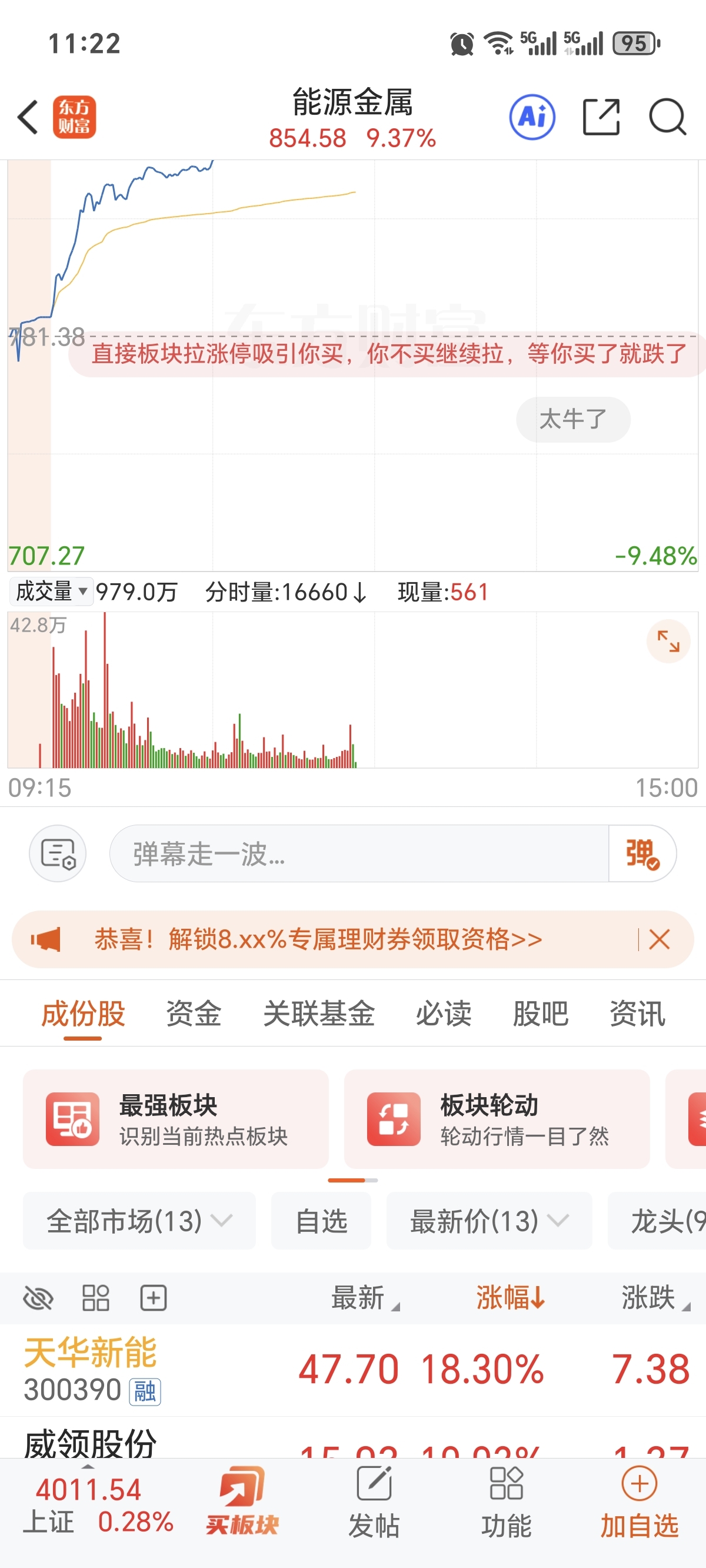 $天华新能(SZ300390)$ 板块都要涨停了大哥哥