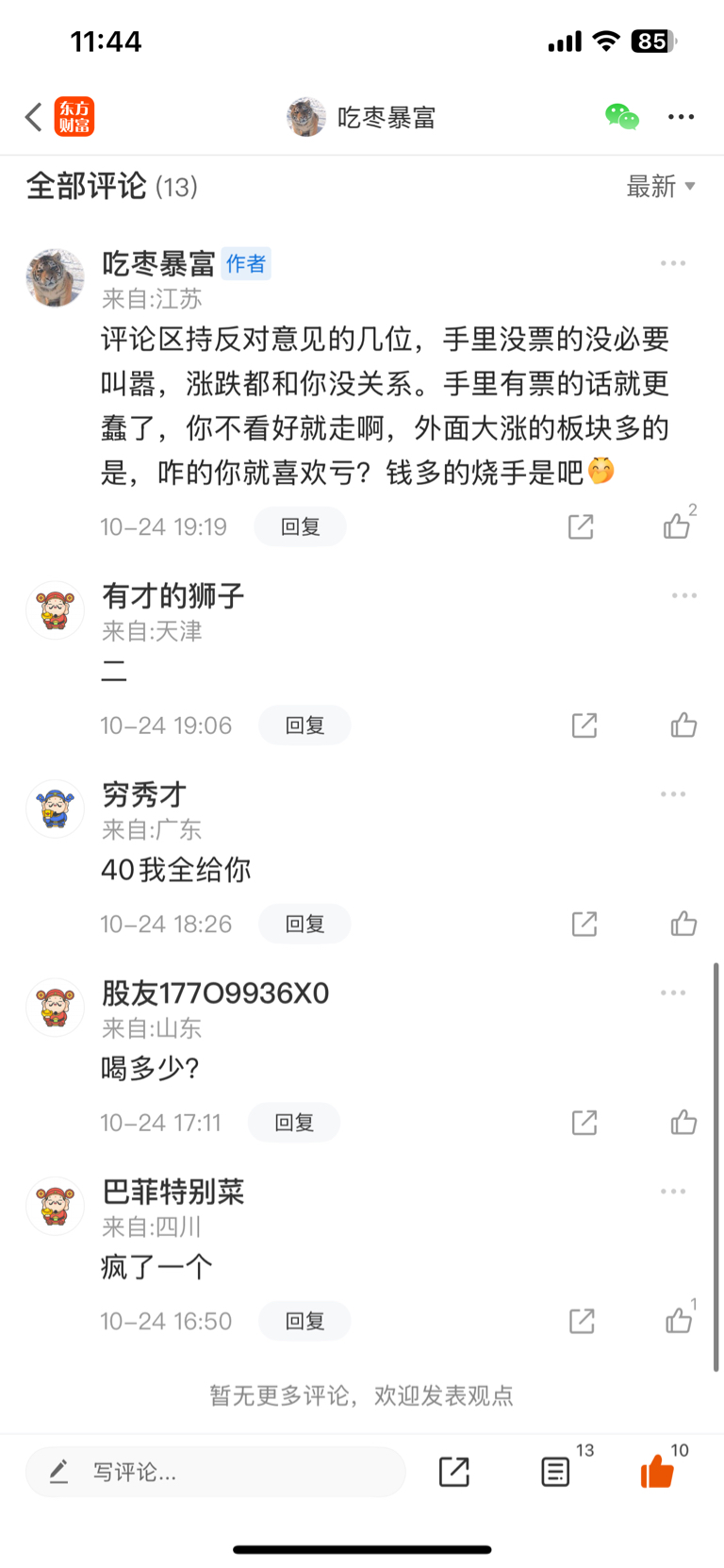 温馨提示: 1.根据《证券法》规定,禁止编造、传播虚假信息或者误导性信息,扰乱证券市场;2.用户在本社区发表的所有资料、言论等仅代表个人观点,与本网站立场无关,不对您构成任何投资建议。用户应基于自己的独立判断,自行决定证券投资并承担相应风险。《东方财富社区管理规定》