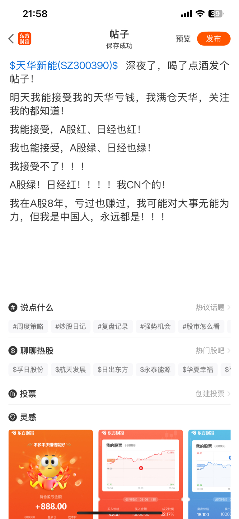 温馨提示: 1.根据《证券法》规定,禁止编造、传播虚假信息或者误导性信息,扰乱证券市场;2.用户在本社区发表的所有资料、言论等仅代表个人观点,与本网站立场无关,不对您构成任何投资建议。用户应基于自己的独立判断,自行决定证券投资并承担相应风险。《东方财富社区管理规定》