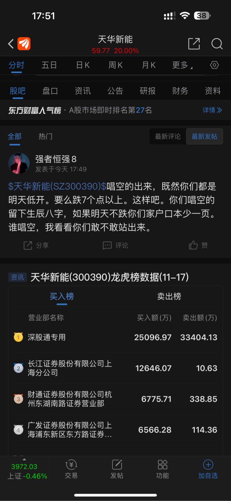 温馨提示: 1.根据《证券法》规定,禁止编造、传播虚假信息或者误导性信息,扰乱证券市场;2.用户在本社区发表的所有资料、言论等仅代表个人观点,与本网站立场无关,不对您构成任何投资建议。用户应基于自己的独立判断,自行决定证券投资并承担相应风险。《东方财富社区管理规定》