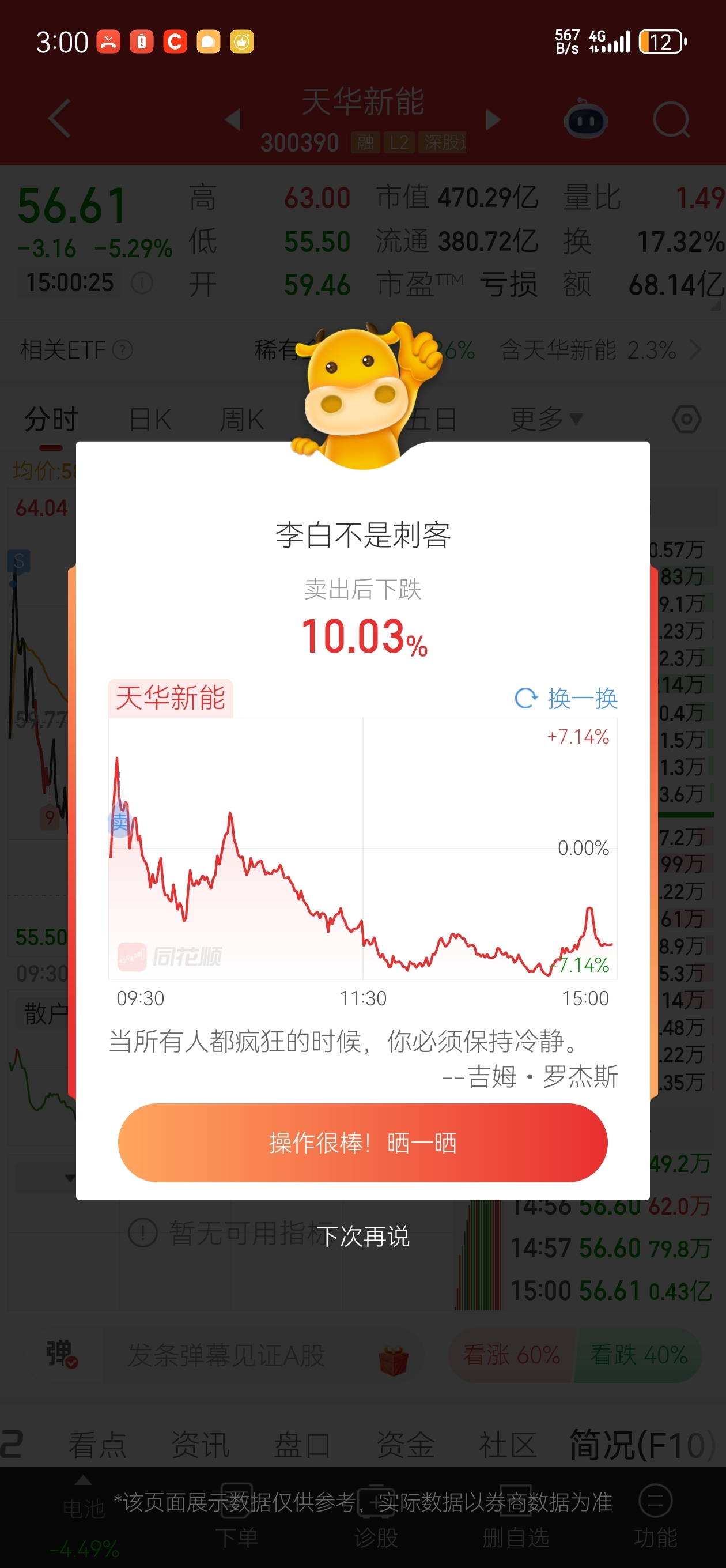 $天华新能(SZ300390)$ 这走势应该要横盘两天了,周五我在回来